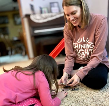 I'm Sara! I started Shining Light Speech Therapy, PLLC in order to place God at the center of my life and provide play-based, child-led speech therapy services oriented towards families and goals that are most important to you.